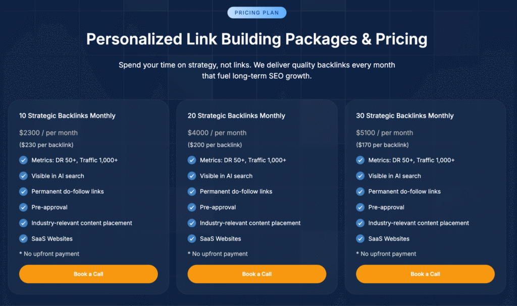 There are no long-term contracts, and they aim to show results within 90 days. If you’re a SaaS team looking for clear, outcome-driven link building, this setup is built for you.